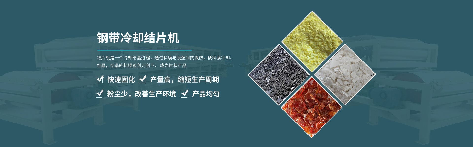 结片机是一个冷却结晶过程,料盘中熔融料与冷却的转鼓接触,在转鼓表面形成料膜,通过料膜与股壁间的换热,使料膜冷却、结晶,结晶的料膜被刮刀刮下,成为片状产品。氯乙酸结片机是通过转动的转鼓,以传热的方式,将附在转鼓外壁的物料或带状物料进行加热干燥的一种连续操作的过程。