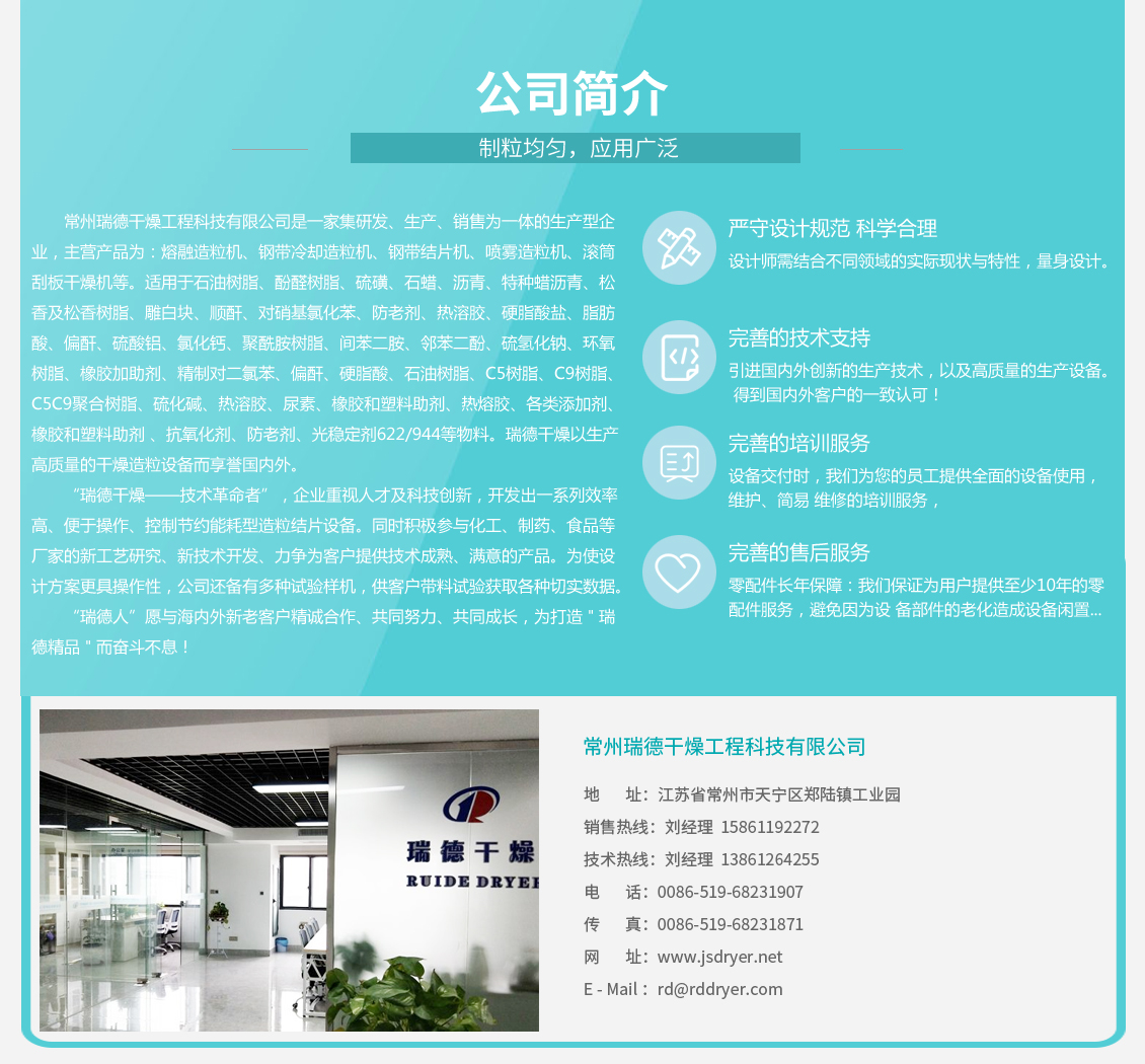 造粒机结片机布料器 PE石蜡造粒机 优质案例 PROJECT TGIC冷却钢带造粒机(用户:佛山XXX... 沥青冷凝钢带造粒机工程 (用户: 济南X... 留香珠造粒机 硬脂酸造粒机 珠宝蜡造粒机 化妆品蜡造粒机 铸造蜡造粒机 沥青造粒机(改性沥青造粒) 费托蜡钢带造粒机工程 (用户:广州XXX... 硫磺冷却造粒机工程 (用户:山东XXX化... < > PE石蜡造粒机 产品描述:高速离心喷雾干燥机是液体成形工艺和干燥工业中广泛应用的工艺。适用于从悬乳 液、溶液、乳液和糊状液体原料中生产粉状、颗粒状固体产品。因此,当成品的颗粒大 小分布、残留水份含量、堆积密度和颗粒形状都符合精确的标准时,喷雾干燥机是好的 干燥工艺。 咨询热线:15861192272 联系我们 在线咨询 产品详细 上一个产品:压力喷雾干燥机 下一个产品:单甘脂冷却造粒机 优质案例 PROJECT TGIC冷却钢带造粒机(用户:佛山XXX... 沥青冷凝钢带造粒机工程 (用户: 济南X... 留香珠造粒机 硬脂酸造粒机 珠宝蜡造粒机 化妆品蜡造粒机