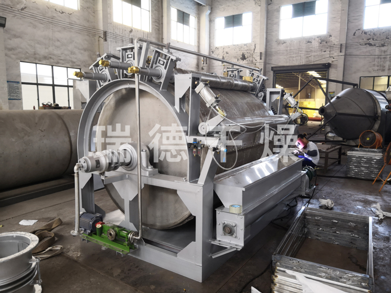 产品描述:工业盐滚筒结片机是一种内加热传导型转动连续干燥设备。旋转的滚筒通过其下部料槽, 粘附着一厚度的料膜,热量通过管道输送至滚筒内壁,传导到滚筒外壁,再传导给料 膜,使料膜中的湿得到蒸发、脱湿、使含湿分的物料得到干燥。干燥好的物料被装置 在滚筒表面的刮刀铲离滚筒,到置于刮刀下方的螺旋输送器,通过螺旋输送器将干物 料集中、包装。